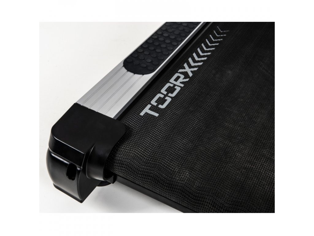 Běžecký pás TRX 3000 v elegantním černo-šedém barevném provedení je modelem z nové edice trenažérů TOORX Chrono Line Pro. Trenažéry z této řady jsou vhodné nejen na trénink v domácím prostředí, ale díky certifikaci ve třídě S, i pro lehce komerční provoz. Trenažér TRX 3000 je vybaven tichým AC motorem s maximálním výkonem 4,5 PS a nadstandartní běžeckou plochou 156 x 60 cm s kvalitním odpružením. Sklon i rychlost pásu si můžete pohodlně regulovat pomocí funkčních tlačítek přímo na konzoli počítače. Bohatá je i programová nabídka, která kromě 16 přednastavených profilů zahrnuje mimo jiné i 3 programy cardio a funkci Body Fat Test. Výkonný motor, odpružená běžecká plocha a robustní konstrukce s nosností až 160 kg jsou zárukou kvalitního tréninku, ať už se rozhodnete pro intenzivní běh, sprint nebo rychlou chůzi.