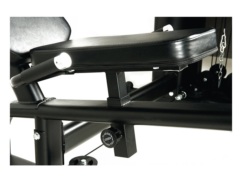 - Nastavitelná multifunkční ramena pro tahové cviky v sedě i ve stoje.