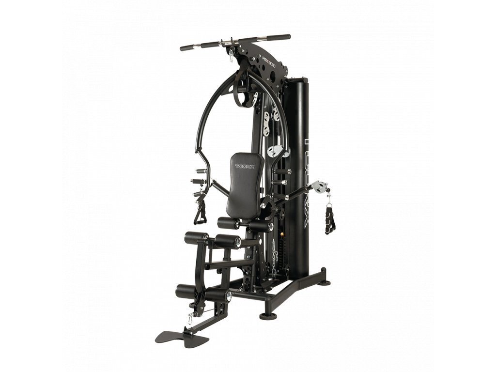 Multifunkční posilovací věž TOORX MSX 3000 v elegantním černo-šedém barevném provedení je modelem z nové edice trenažérů TOORX Chrono Line Pro. Trenažéry z této edice jsou vhodné nejen na trénink v domácím prostředí, ale díky certifikaci ve třídě S, i pro lehce komerční provoz. Věž disponuje masivní ocelovou konstrukcí z obdélníkových profilů 50 x 100 mm, která je ošetřena kvalitní práškovou barvou odolnou proti poškrábání. Kladky jsou osazeny ložisky a ocelová lanka převodového systému chrání speciální polyuretanový potah, což zaručuje dlouhou životnost stroje i bezpečnost při cvičení. Věž je vybavena celou řadou tréninkových stanovišť. Stanoviště se, díky polohovatelnému sedáku i zádové opěrce a nastavitelnosti jednotlivých adaptérů, perfektně přizpůsobí potřebám trénujícího a umožní velmi účinně posilovat všechny svalové skupiny jak horní, tak dolní části těla.